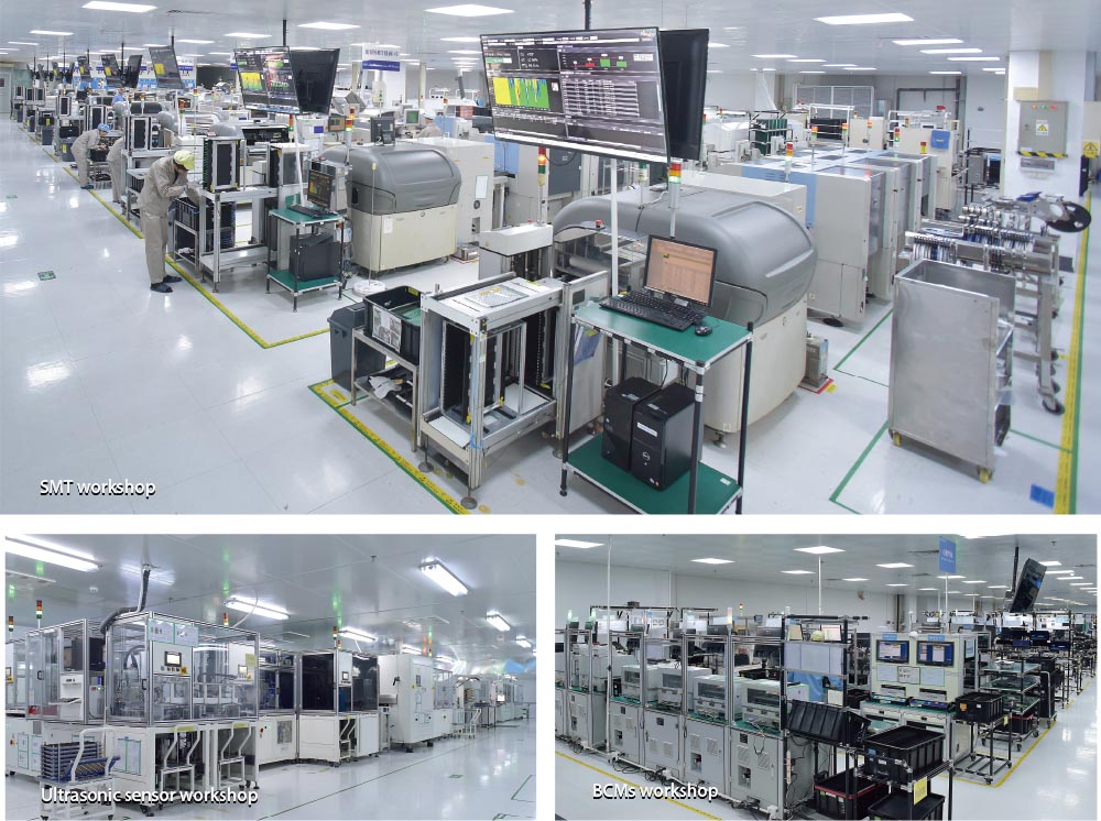 Actualizamos constantemente nuestras instalaciones de producción y hemos construido un centro de fabricación inteligente. Contamos con líneas de producción totalmente automatizadas (equipos de Alemania y Japón) para el proceso SMT, líneas de producción automáticas para sensores ultrasónicos (con una producción anual de 4,5 millones de unidades), un taller de BCM que opera con estándares PPM, líneas de producción de controladores VCU/DCU y PEPS personalizados y automatizados, así como dispositivos de producción flexibles y automáticos desarrollados internamente. Gracias a nuestra amplia experiencia, podemos garantizar la conformidad de la calidad del producto y la entrega puntual.