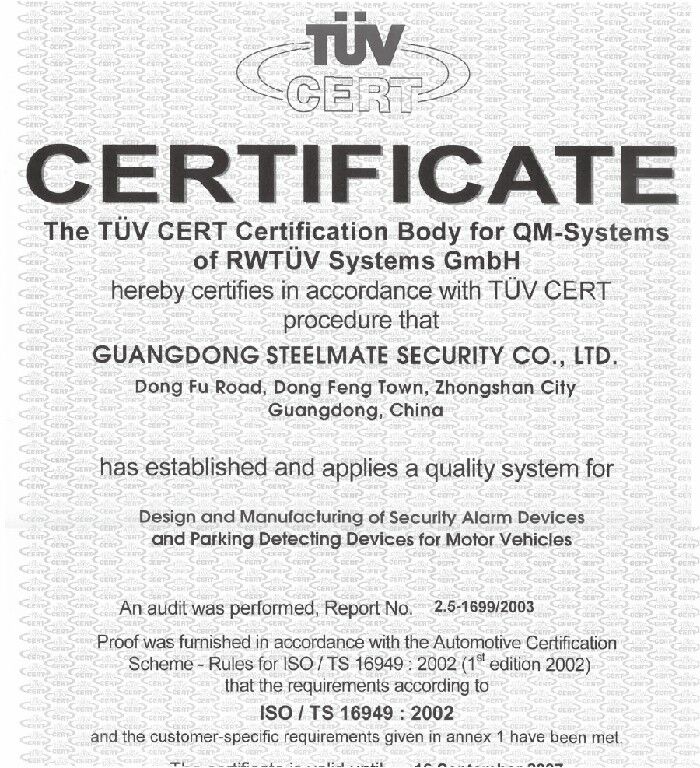 Steelmate siempre se ha comprometido a permitir al público una vida al volante más segura y cómoda a través del desarrollo, la fabricación y la venta de soluciones electrónicas de seguridad automotriz confiables y ofreciendo servicios de soporte profesional a los principales fabricantes de automóviles chinos convencionales y fabricantes emergentes de vehículos de nueva energía, así como a clientes de posventa tanto en el país como en el extranjero.