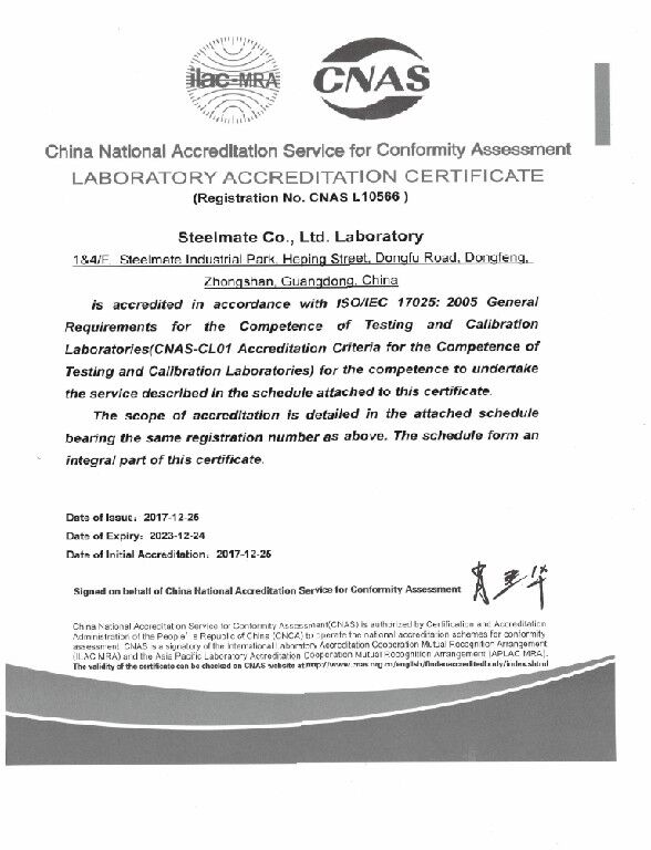Laboratorio Steelmate acreditado por CNAS